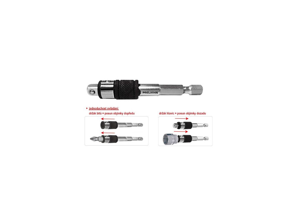 v okamžiku se změní adaptér pro 1/4” nástrčné hlavice na 1/4” držák bitů