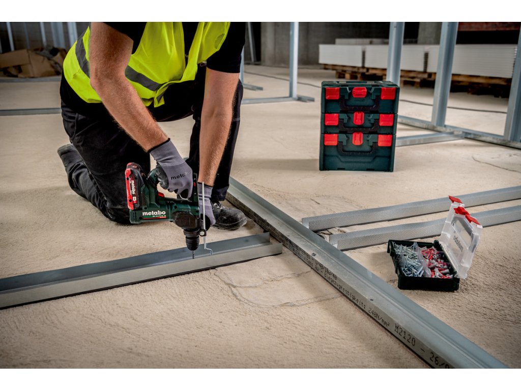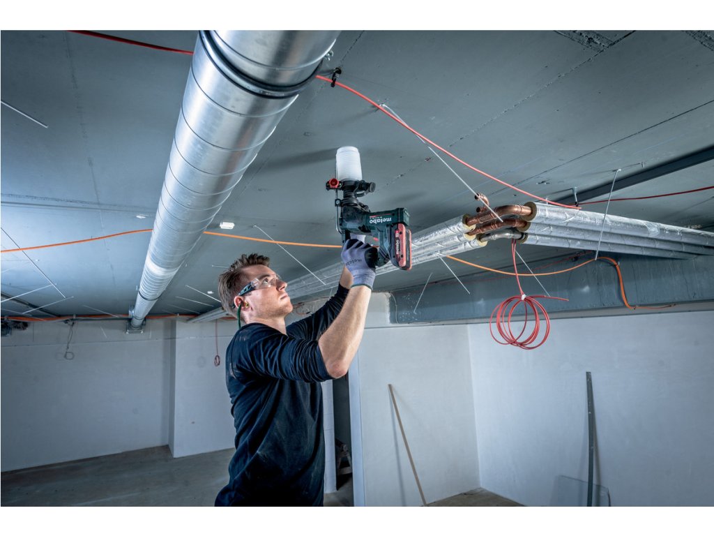 - Velmi lehké, kompaktní akumulátorové kladivo s bezuhlíkovým motorem pro eliminaci únavy při vrtání v jakékoli pracovní poloze