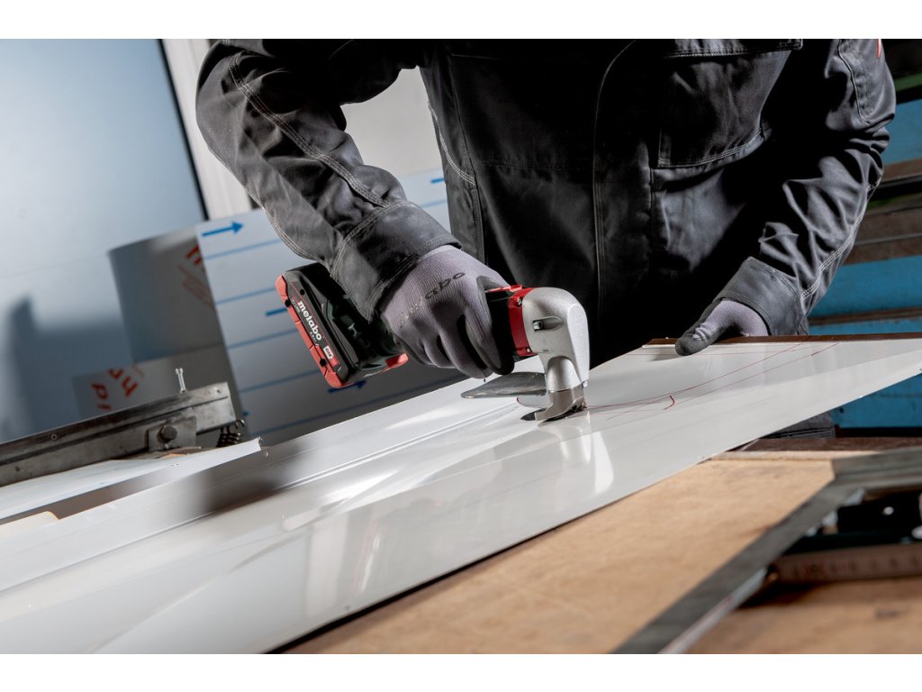 - Velmi šikovné a obratné akumulátorové nůžky na plech pro řezání plechů bez otřepů přímo na místě