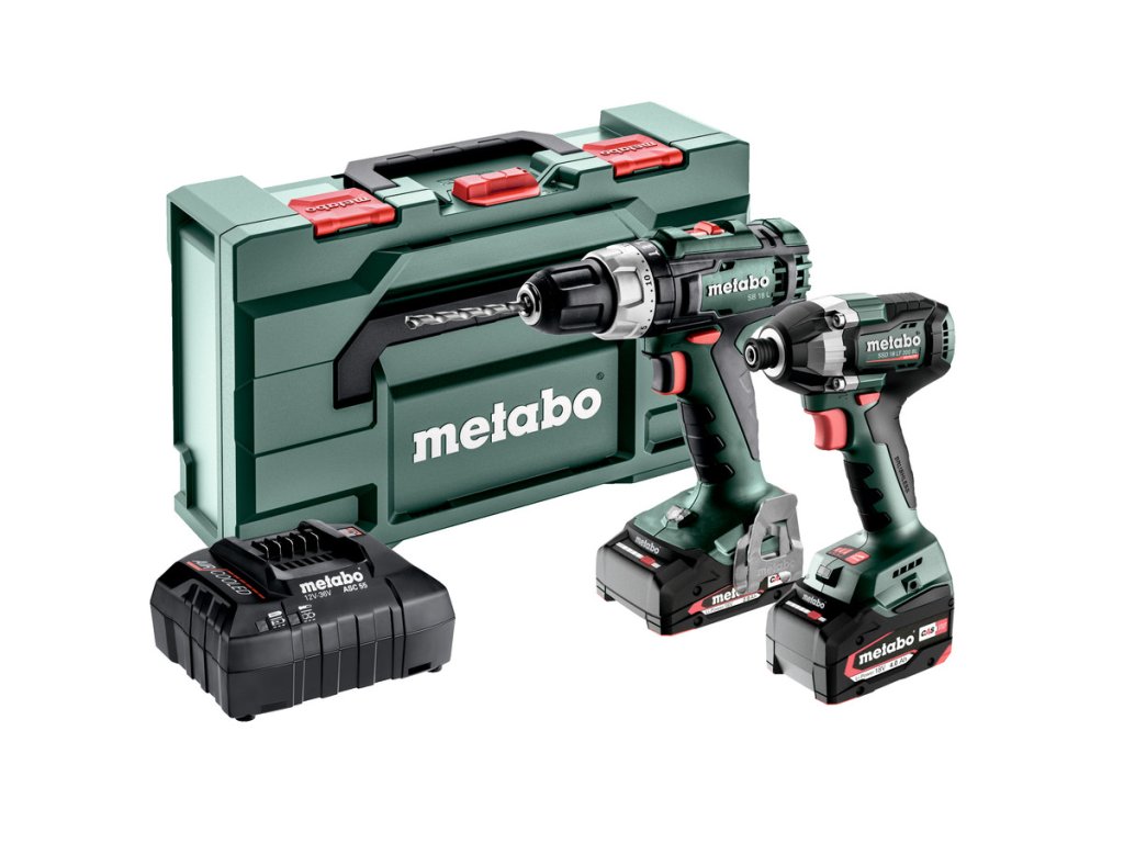 - Akumulátorová příklepová vrtačka SB 18 L, akumulátorový rázový utahovák SSD 18 LT 200 BL, 1 akumulátorový článek Li-Power (18 V/2,0 Ah), 1 akumulátorový článek Li-Power (18 V/4,0 Ah), nabíječka ASC 55, metaBOX 145 l