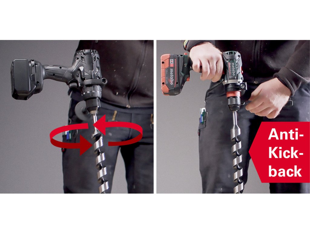 - Elektronické bezpečnostní vypnutí: bez zpětného rázu při zablokování vrtáku – pro vysokou úroveň ochrany uživatele