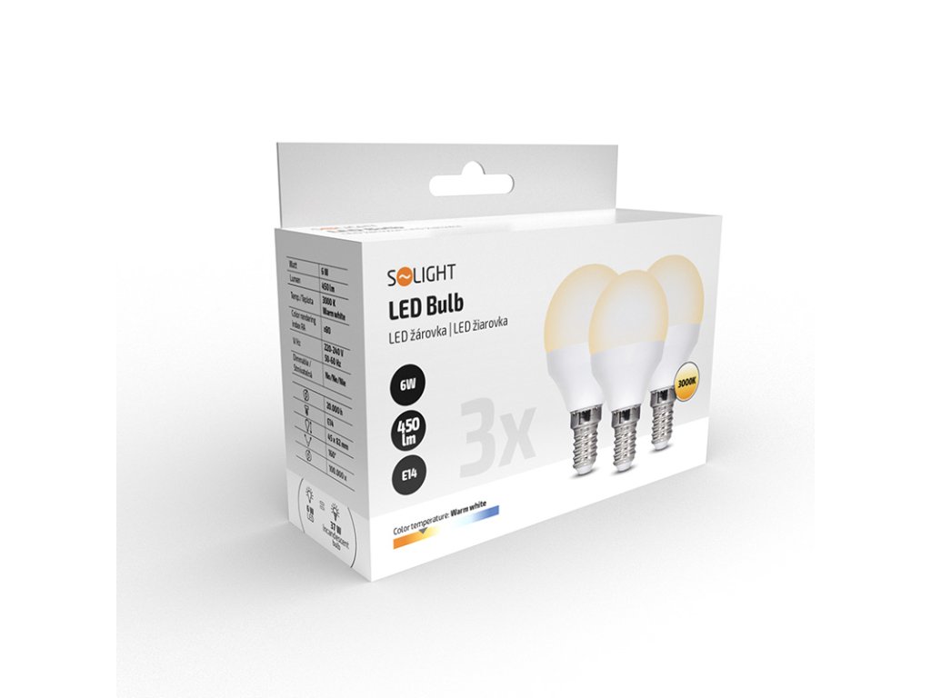 ECOLUX LED žárovka Ecolux 3-pack , miniglobe, 6W, E14, 3000K, 450lm, 3ks