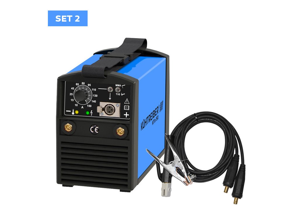 KITin 150 jsou svařovací invertory určené pro průmyslové a profesionální použití. Jsou konstruovány s využitím vysokofrekvenční technologie s rychlou regulací svařovacího proudu. Stroje se vyznačují vysokými zatěžovateli (125 A na 100 %), výkonem a vynikajícími svařovacími vlastnostmi. Jsou lehké, malých rozměrů a hlavně spolehlivé. Tyto stroje jsou určeny do provozů, kde je kladen důraz na maximální užitnou hodnotu a vysoký výkon za příznivou cenu. Stroje jsou vybaveny konektorem k připojení dálkového ovládání s regulací potenciometrem. VLASTNOSTI A VYBAVENÍ Vysoký výkon Vynikající svařovací vlastnosti metodou MMA Lze svařovat i metodou TIG Nízká hmotnost a malé rozměry Spolehlivá konstrukce Popruh pro snadné přenášení Tepelná ochrana se světelnou signalizací Vysoké zatěžovatele HOT START ARC FORCE ANTI STICK OBSAH SETU Stroj KITin 150 Svařovací kabely 25 mm², délka 3 m