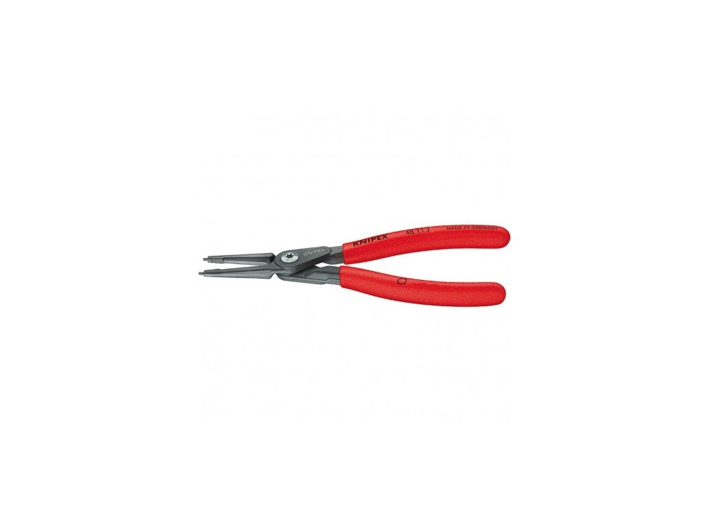 Nové precizní kleště pro pojistné kroužky KNIPEX vyhovují nejvyšším požadavkům. Tvarově přizpůsobené zalisované hmoty z legované pružinové oceli nabízejí 10krát vyšší životnost v porovnání s běžnými kleštěmi pro pojistné kroužky a vysokou stabilitu při uvolňování pevně usazených kroužků. Velké opěrné plochy hrotů zajišťují spolehlivé uchycení kroužků na hrotech.