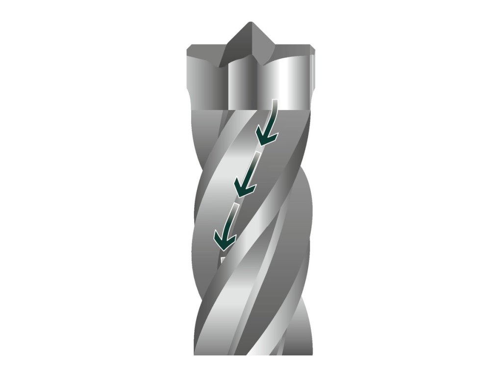- Velmi robustní a agresivní vrtací hlava z plného tvrdokovu, 4 břity pro mimořádnou životnost a odolnost při vrtání v železobetonu
