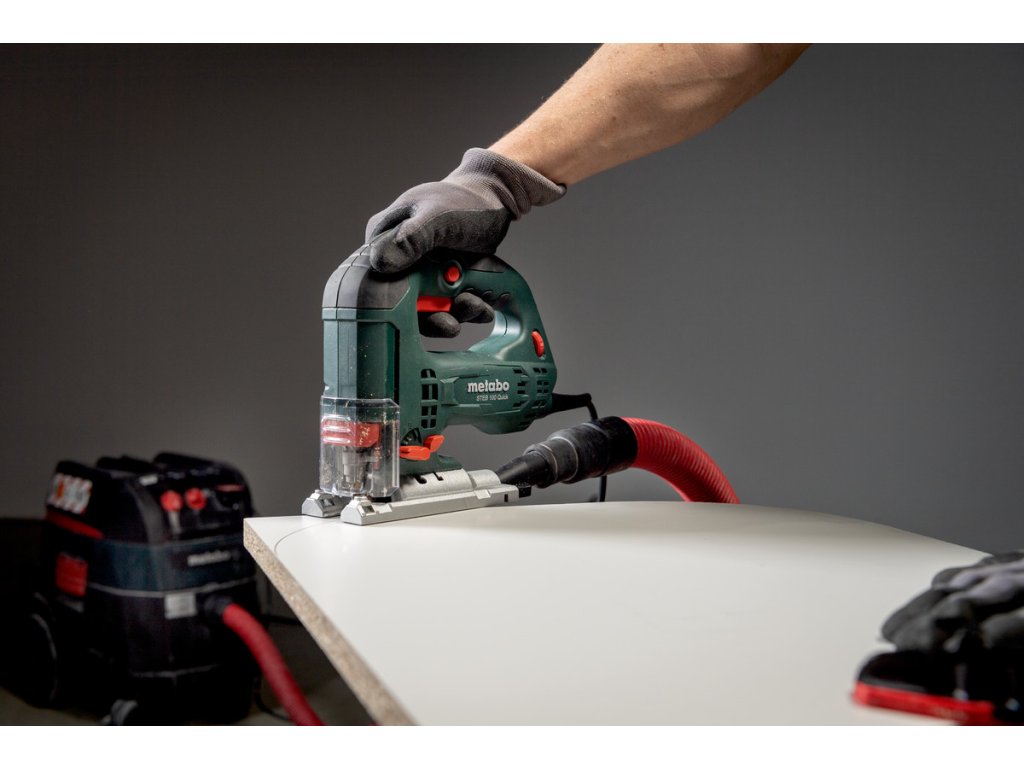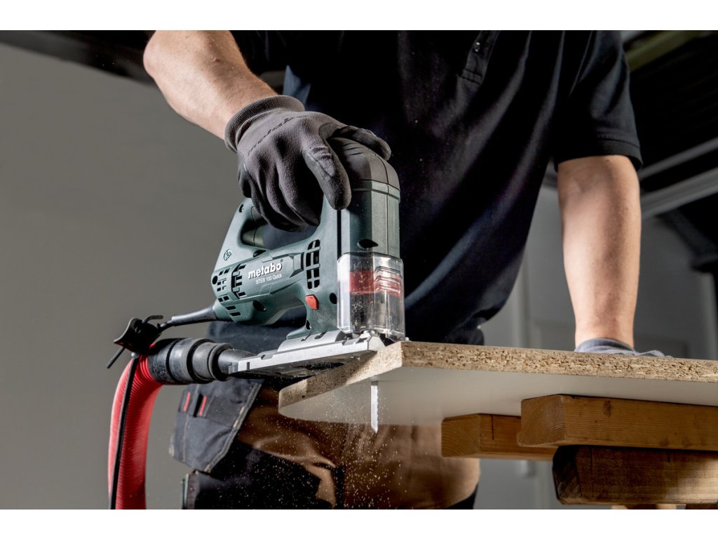 - Metabo Quick pro výměnu pilového plátku bez použití nástrojů s automatickým výhozem