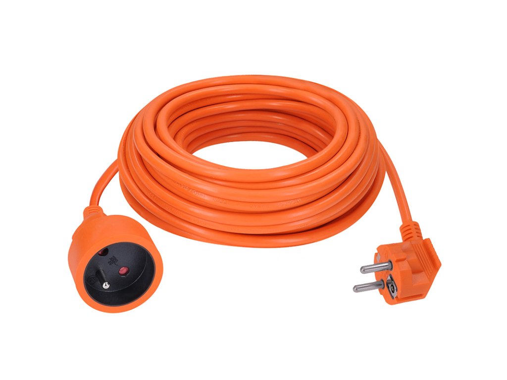 Oranžový prodlužovací kabel s délkou 15 metrů a jednou zásuvkou je ideální k prodloužení elektrické energie na zahradě nebo v dílně. Díky třem vodičům včetně uzemnění je vhodný pro připojení jakýchkoli zařízení s třípólovou uzemněnou i dvoupólovou neuzemněnou vidlicí přívodní šňůry. Barevné odlišení od okolního prostředí zvyšuje bezpečnost při práci.