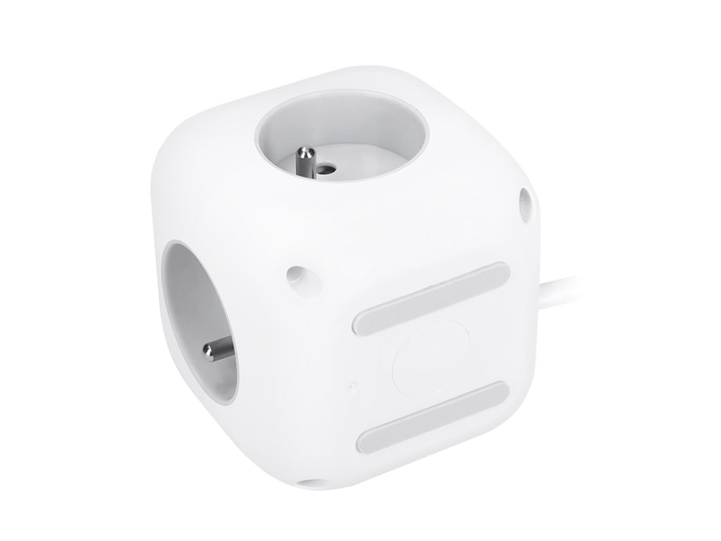 Promyšlené rozmístění zásuvek umožňuje snadné připojení různých přívodních šňůr i objemných napájecích adaptérů bez vzájemného překážení. Elegantní kostkový design se zaoblenými hranami, bílým tělem a šedými zásuvkami se hodí do každého prostředí – ať už jde o kancelář, domácnost nebo pracovní dílnu.