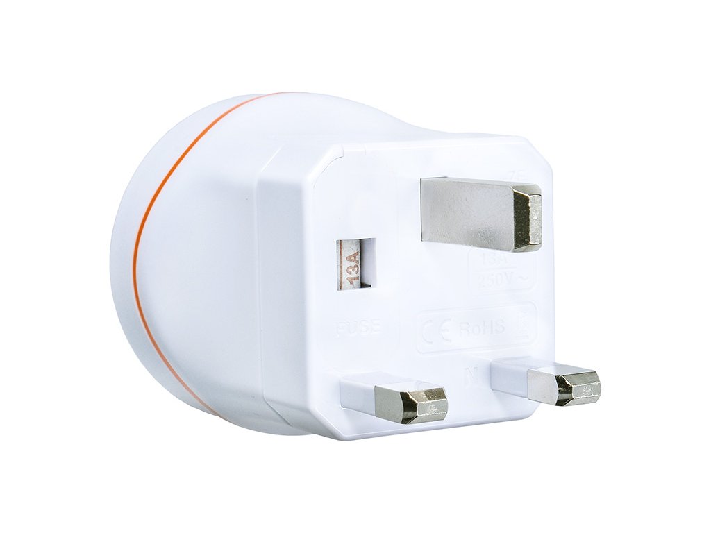 Adaptér umožňuje bezpečné použití evropských zařízení v zásuvkách Spojeného království a zemích s UK standardem. Připojí uzemněné i neuzemněné vidlice přívodních kabelů, bez problémů zapojíte vše od notebooků, telefonů až po fény.