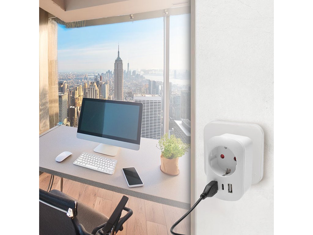 Adaptér umožňuje bezpečné použití evropských zařízení v zásuvkách Spojených států a zemích s USA standardem typ B. Připojí uzemněné i neuzemněné vidlice přívodních kabelů, bez problémů zapojíte vše od notebooků až po fény. Vestavěná USB nabíječka nabíjí telefon či tablet bez nutnosti odpojovat přívodní šňůru z hlavní zásuvky.