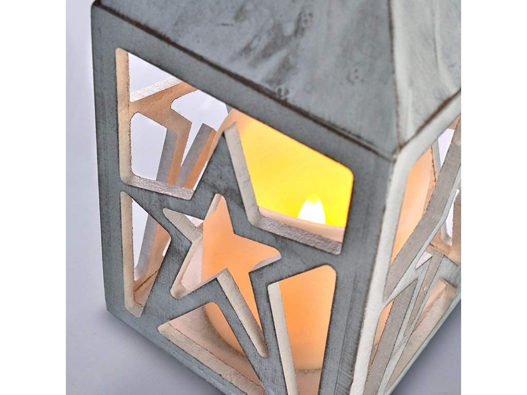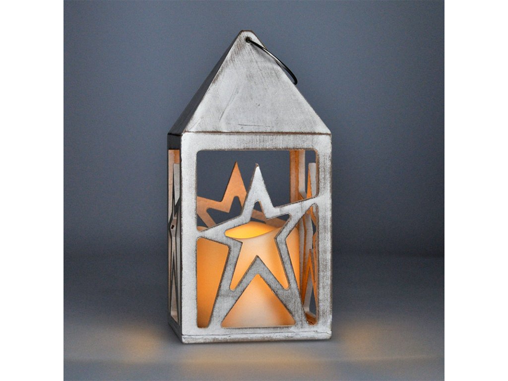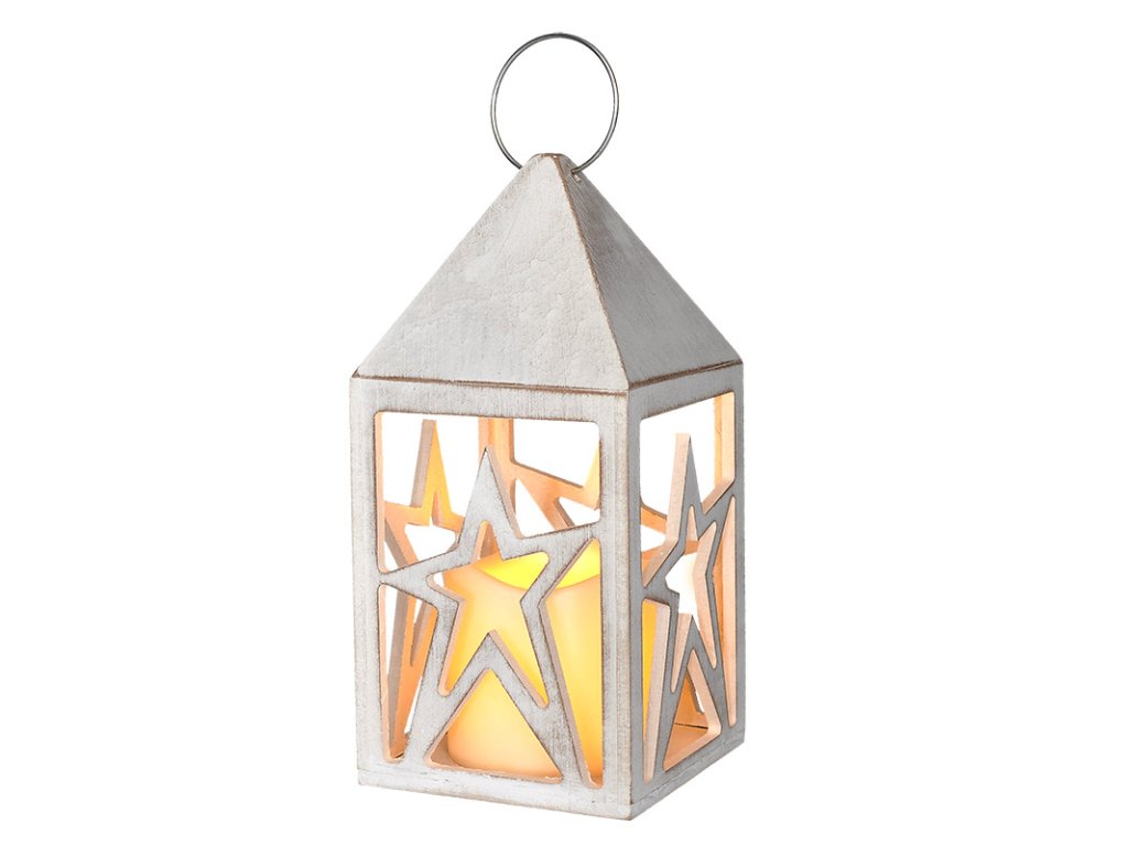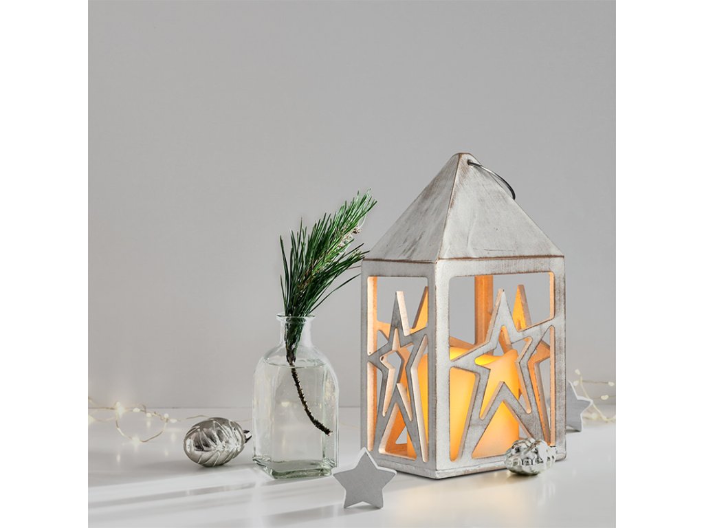 - vánoční dřevěná lucerna s LED svíčkou