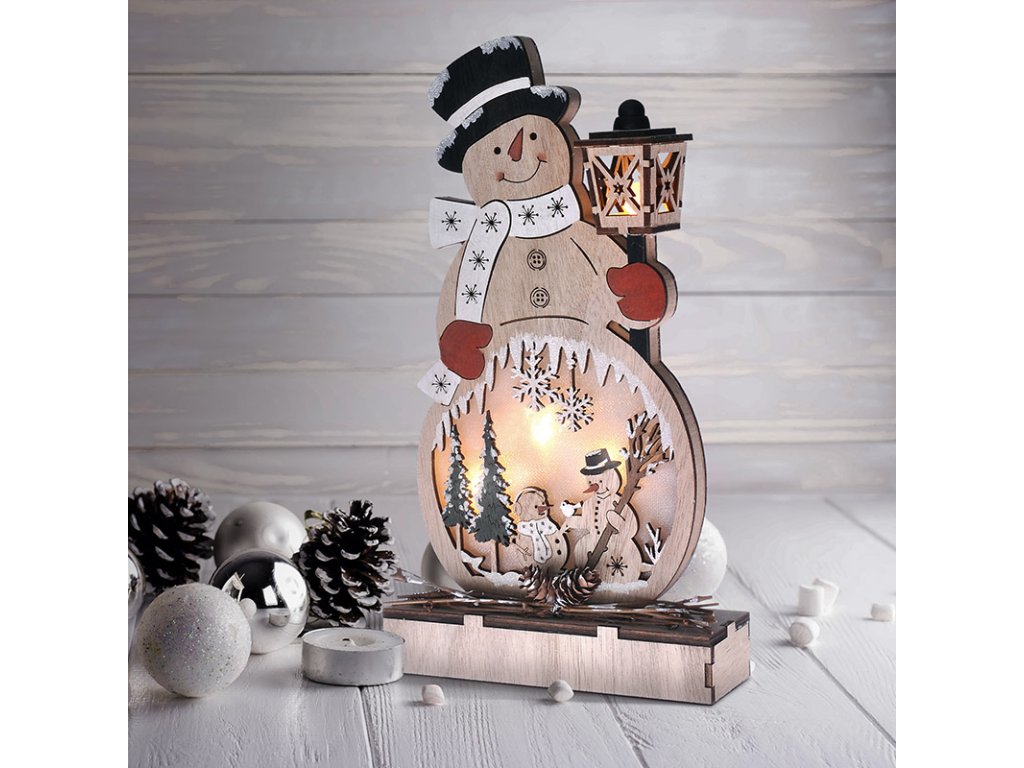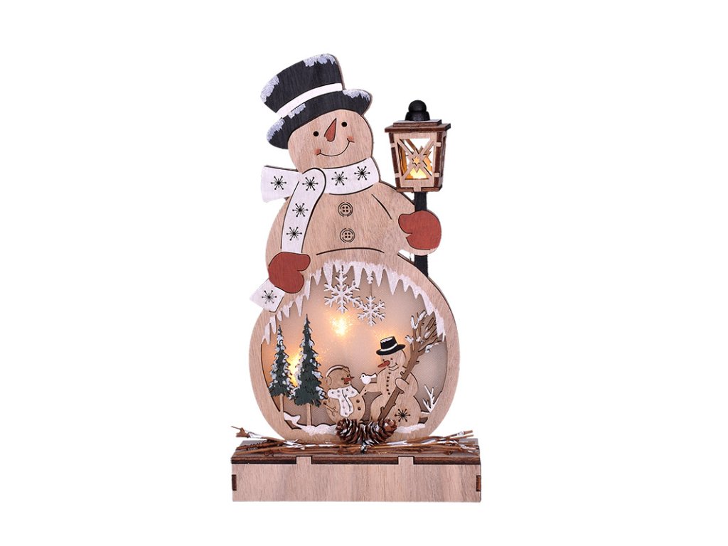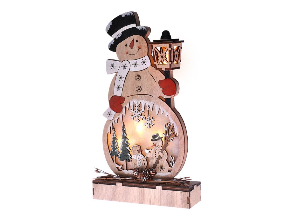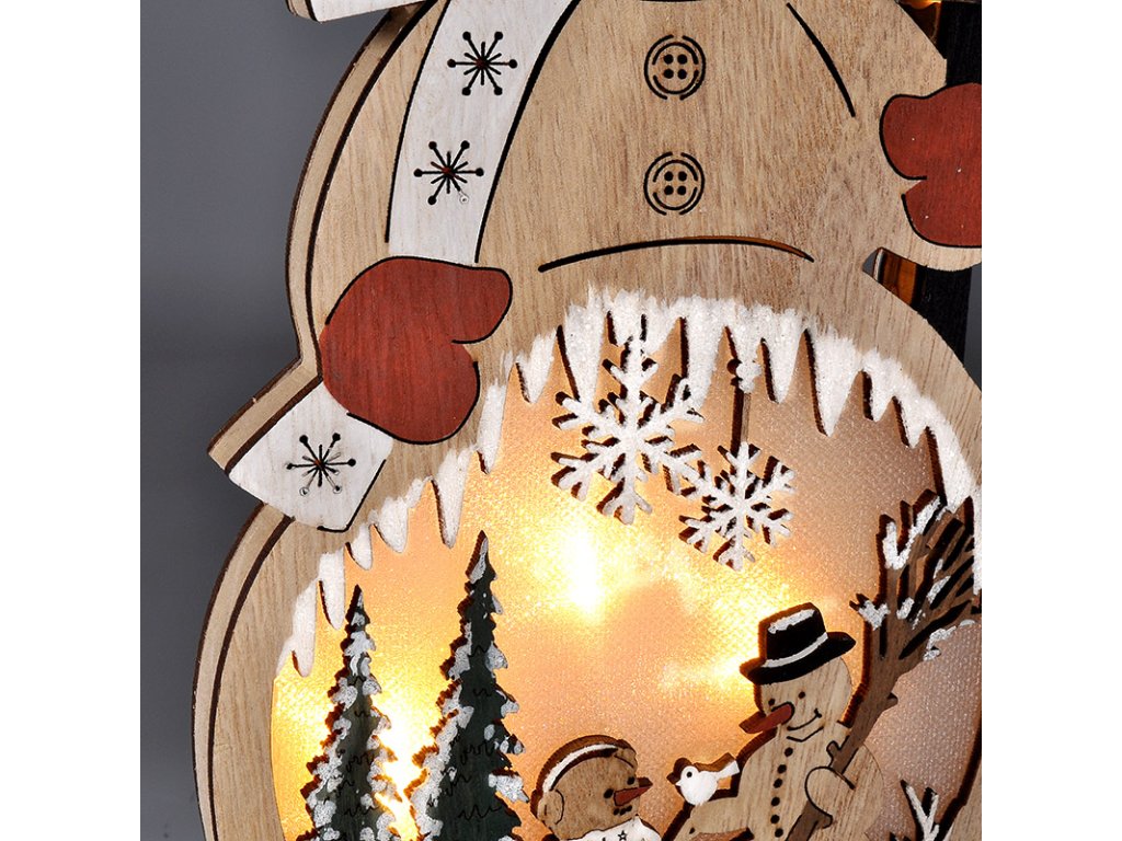 - dřevěný sněhulák s LED diodami