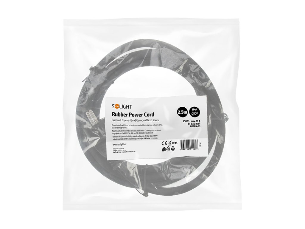 Solight flexo šňůra, 2.5m, 3 x 2.5mm2, gumová H07RN-F3, černá