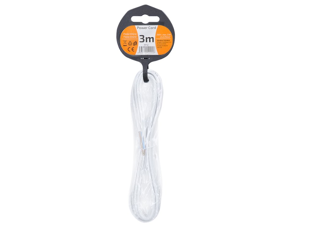 Přívodní PVC kabel s volnými vodiči umožňuje připojení přímo do spotřebiče nebo k pohyblivé zásuvce. Vodiče jsou ze splétaných měděných drátků s měděnými krimpovanými koncovkami, usnadňující montáž do svorkovnice. Určeno pro vnitřní použití, stupeň krytí IP20.