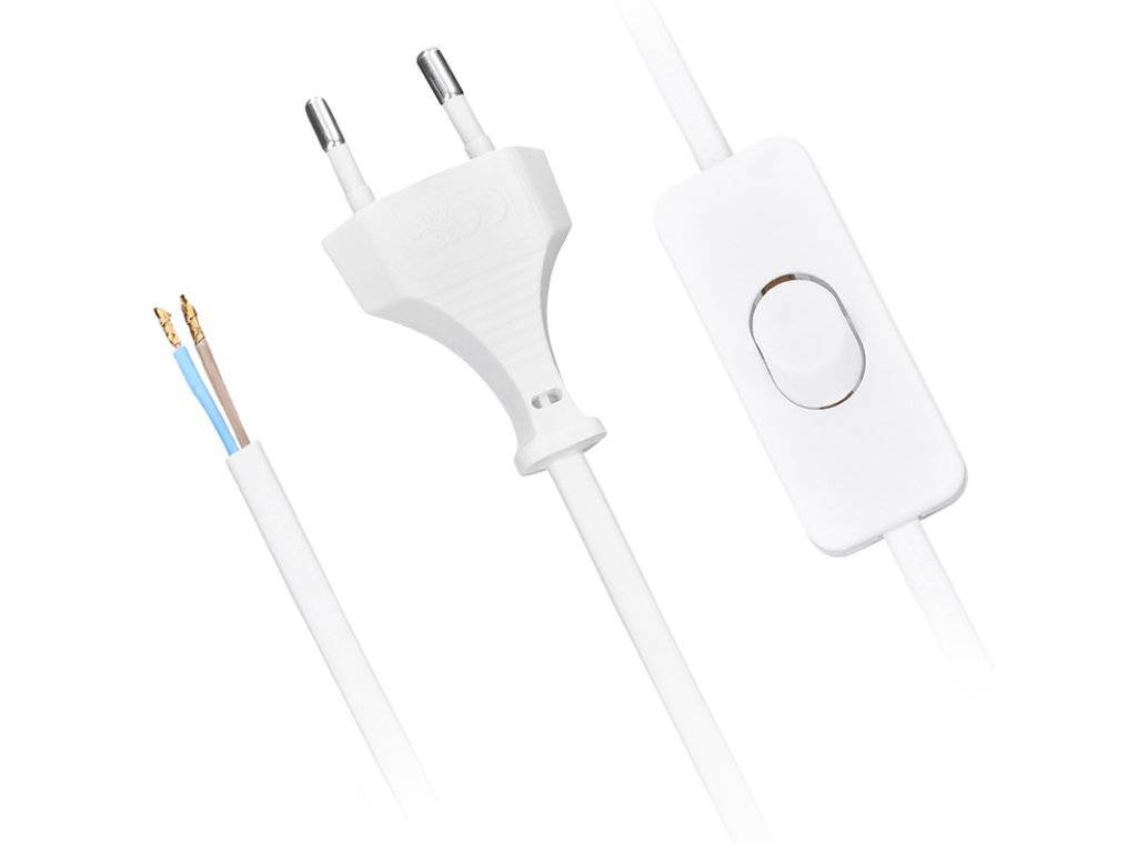 Solight flexo šňůra, 2x 0,75mm2, bílá, plochá, vypínač, 3m