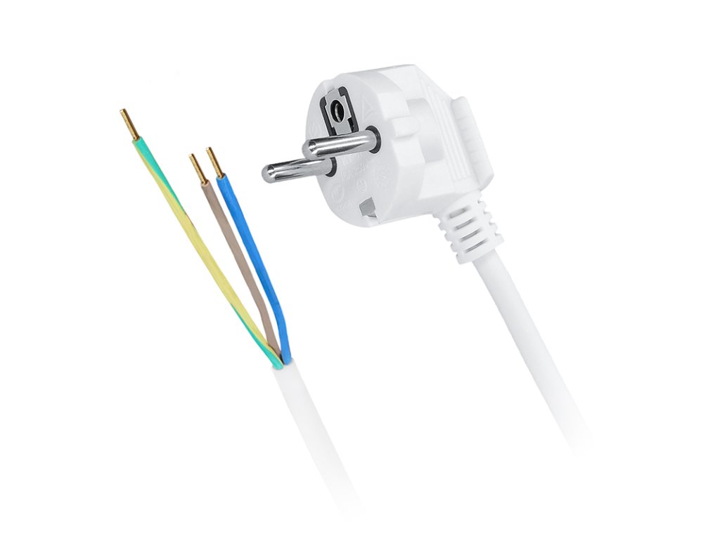 Přívodní PVC kabel s volnými vodiči umožňuje připojení přímo do spotřebiče nebo k pohyblivé zásuvce. Vodiče jsou ze splétaných měděných drátků s měděnými krimpovanými koncovkami, usnadňující montáž do svorkovnice. Určeno pro vnitřní použití, stupeň krytí IP20.