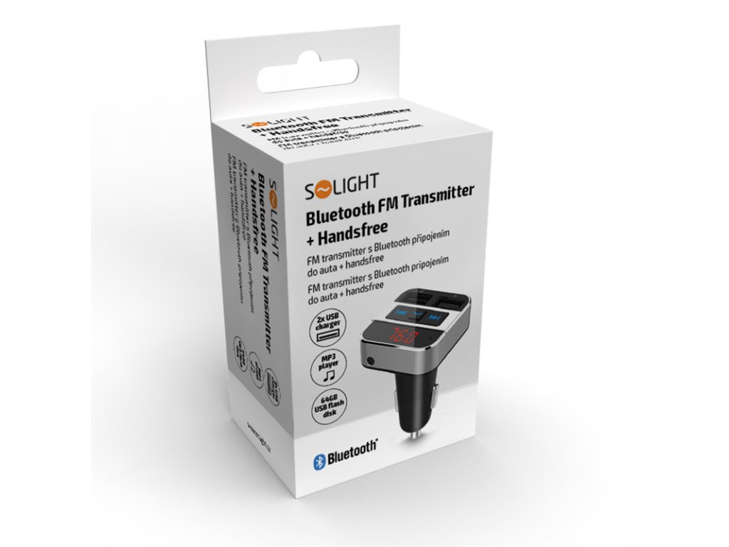 Solight FM transmitter s bluetooth připojením do auta, 2x USB + handsfree
