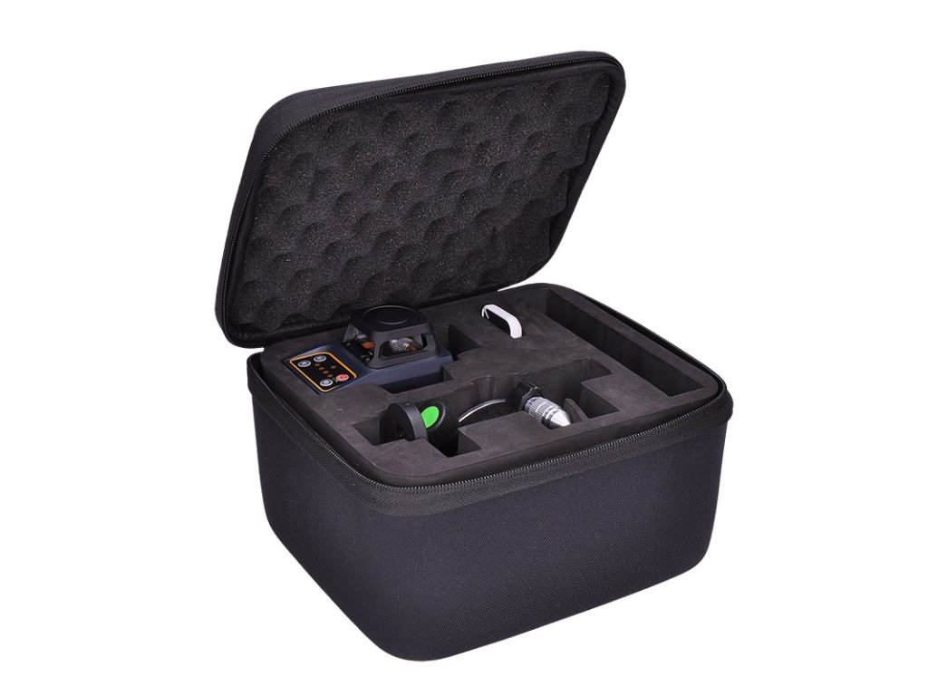 Profesionální laserová vodováha se zeleným laserem s 12 liniemi v rozsahu 360° pro maximální přesnost. Nabízí 1 horizontální a 2 vertikální paprsky, samonivelační režim i možnost libovolného úhlu. Dosah paprsku až 30 m, přesnost ±0,3mm/1m. IP54 krytí zajišťuje odolnost proti prachu a vlhkosti. Pracovní doba až 30 hodin, lithiová baterie 3,7V 4000mAh. Dálkové ovládání s dosahem až 80 m. Obsah balení: vodováha, stativ, držák, terčík, dálkový ovladač, brašna, napájecí kabel a návod.