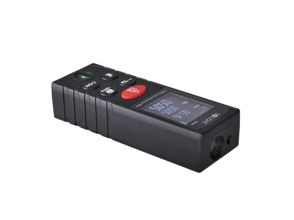 Laserový měřič vzdálenosti s výpočtem plochy a objemu.
