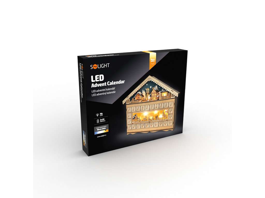 Solight LED adventní kalendář - horská chata, 10x LED, 50x40cm, 2x AA