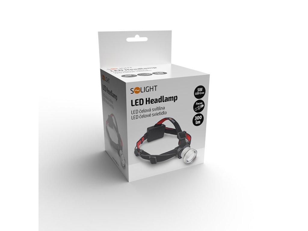 Solight LED čelová svítilna, 300lm, Cree XPG R5, fokus, 3 x AA