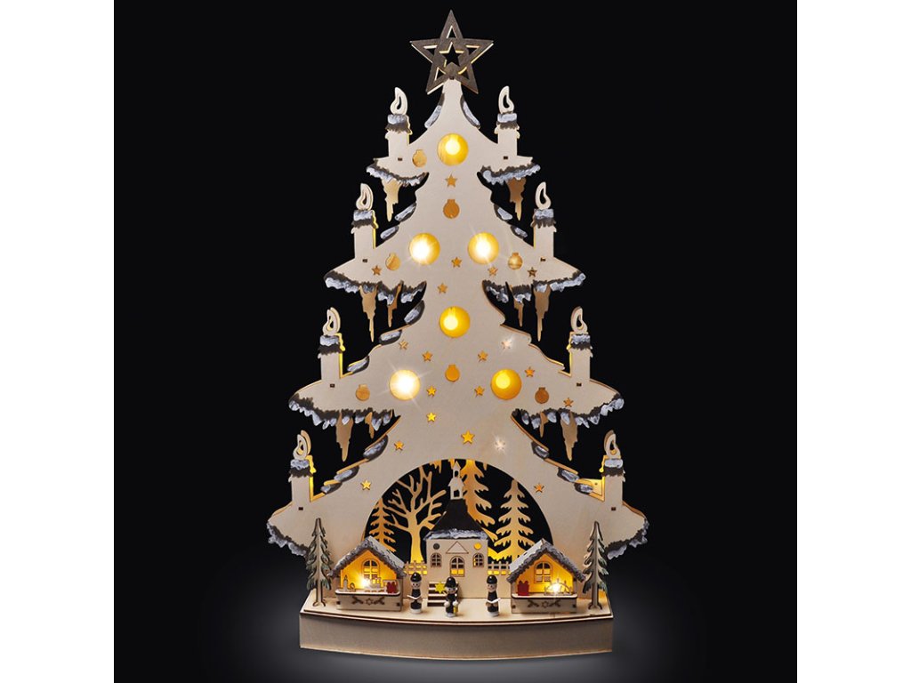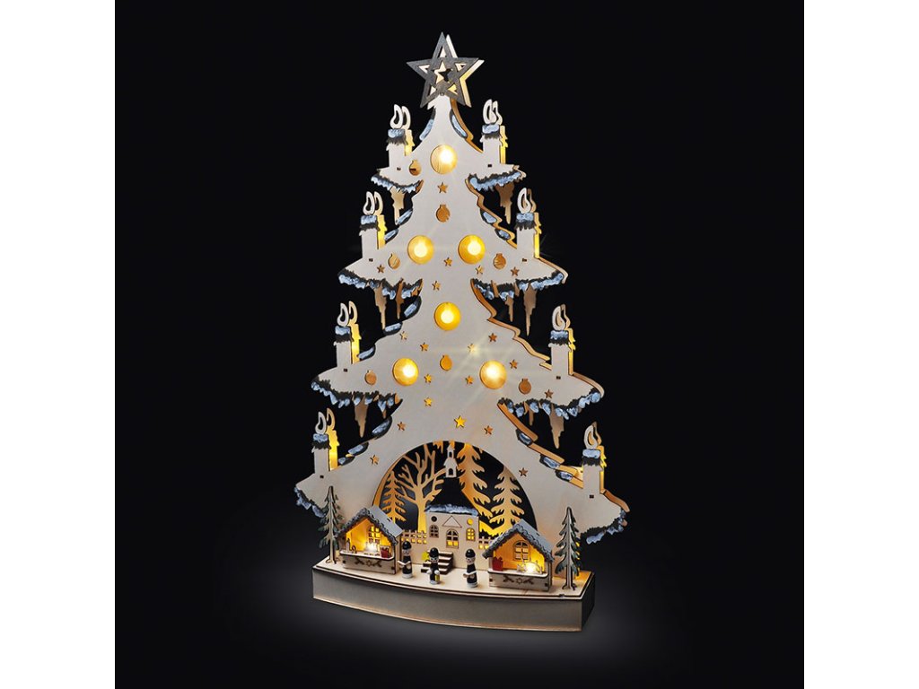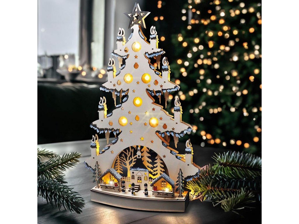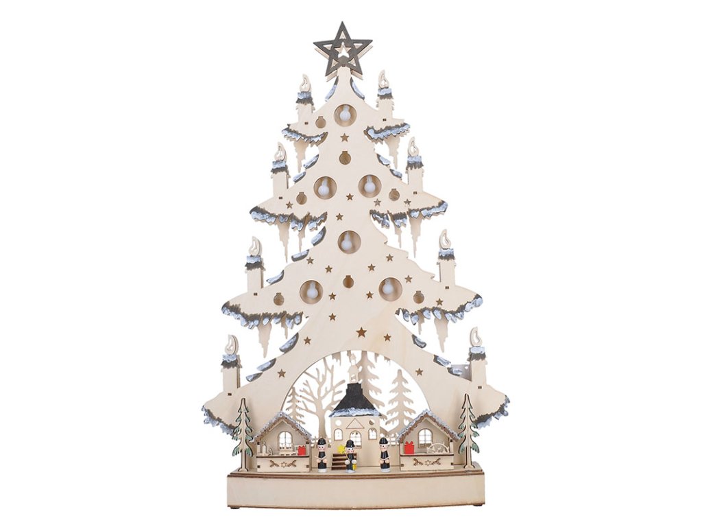 - dřevěný váčnoční stromekek s dekoracemi a LED osvětlením