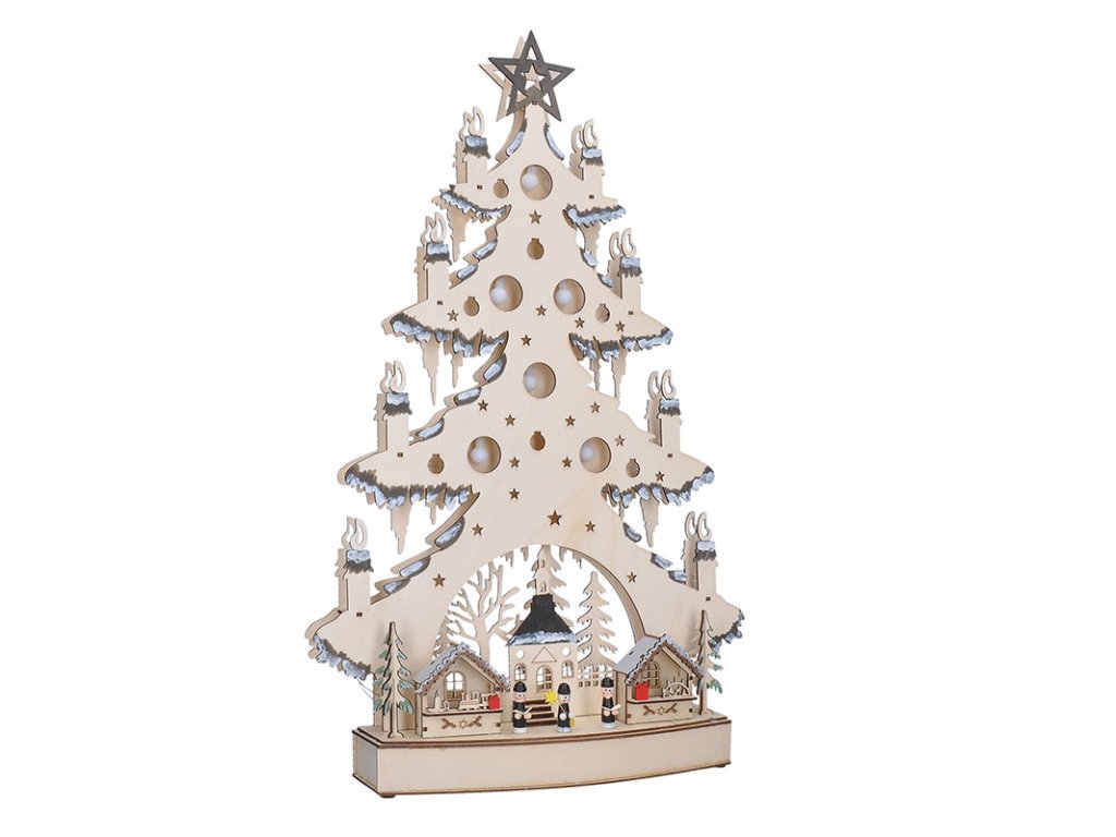 Tento vysoký dřevěný vánoční stromek je stylovou dekorací, která skvěle doplní předsíň, chodbu i obývací pokoj. Na výšce 64 cm a šířce 40 cm se rozprostírá 23 LED diod s teple bílým světlem, které krásně osvěcují drobné dekorace po celém stromku. Díky přírodnímu dřevěnému vzhledu zapadne do rustikálního i skandinávského interiéru.