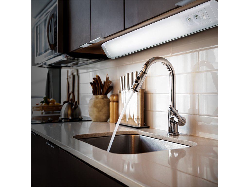 Solight LED kuchyňské svítidlo, 2x zásuvka, vypínač, 10W, 4100K, 51cm