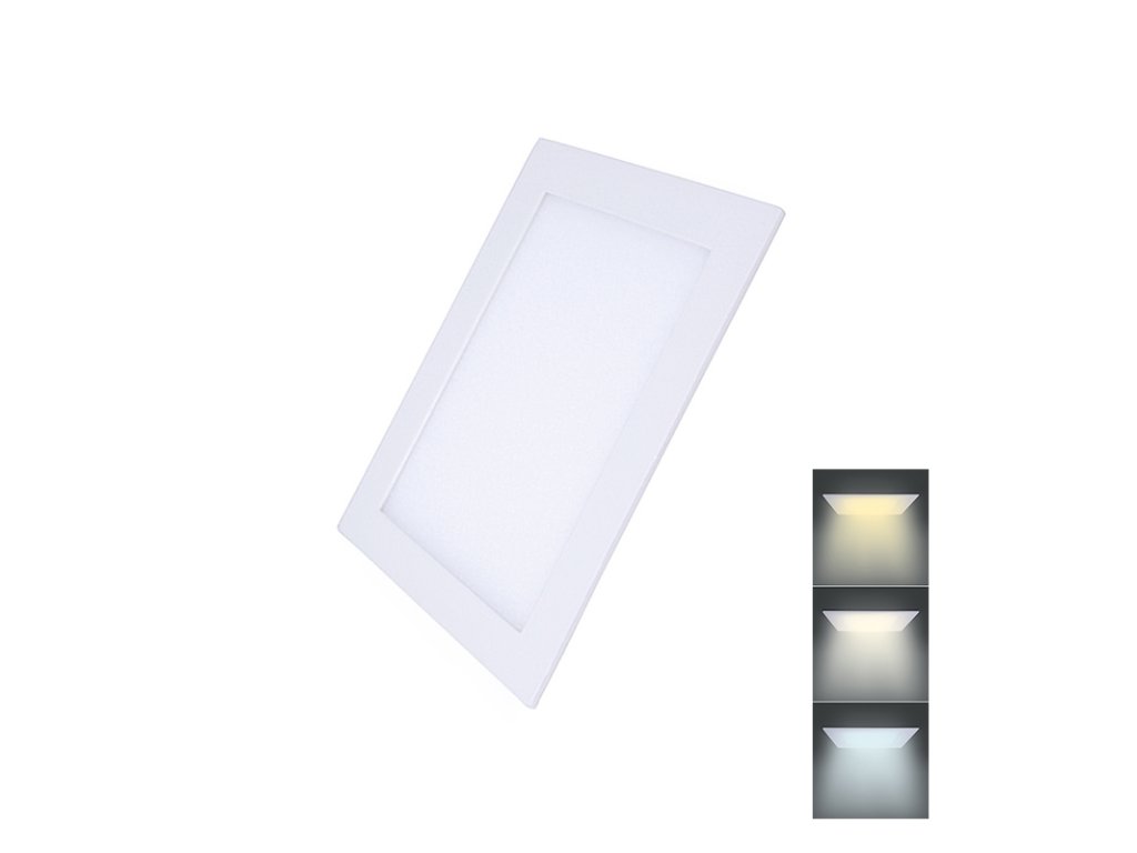 Designový čtvercový LED stropní panel s příkonem 12 W a světelným tokem 900 lm je ideální pro zapuštěnou instalaci do podhledů. Praktický přepínač umožňuje volbu teploty světla podle aktuální potřeby – od teplé bílé 3000K přes neutrální 4000K až po studenou bílou 6000K. Panel má výborné světelné pokrytí díky úhlu svícení 160° a okamžitému startu bez zpoždění.