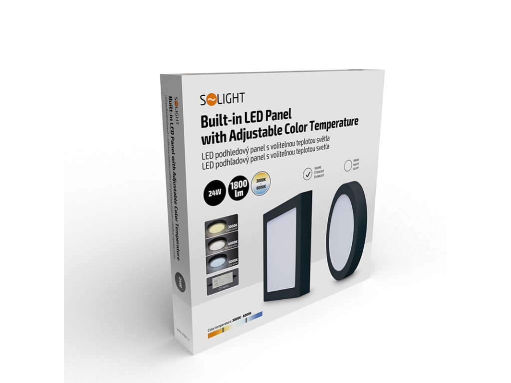 Solight LED mini panel CCT, přisazený, 24W, 1800lm, 3000K, 4000K, 6000K, čtvercový, černá barva