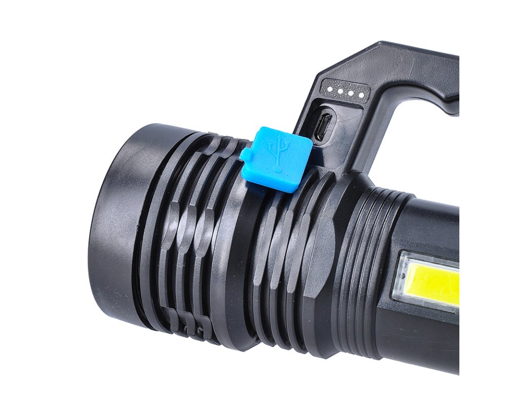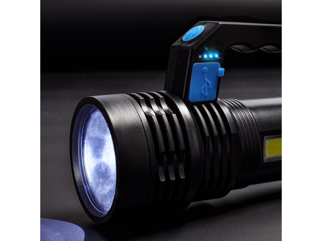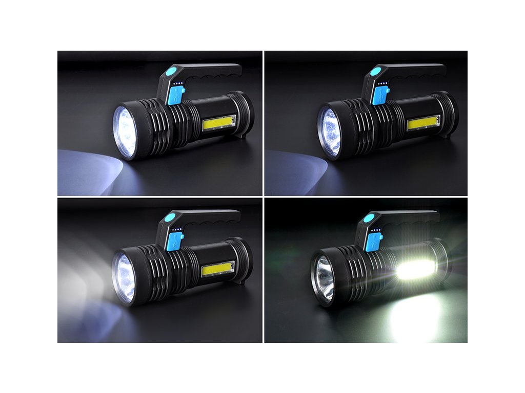 - LED ruční nabíjecí svítilna s předním a bočním zdrojem světla