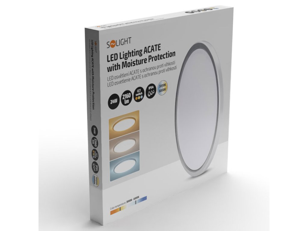 - LED osvětlení s nastavitelnou teplotou světla Acate. Světlo nabízí ochranu proti vlhkosti IP54 a je tak vhodné do interiérů i exteriérů.