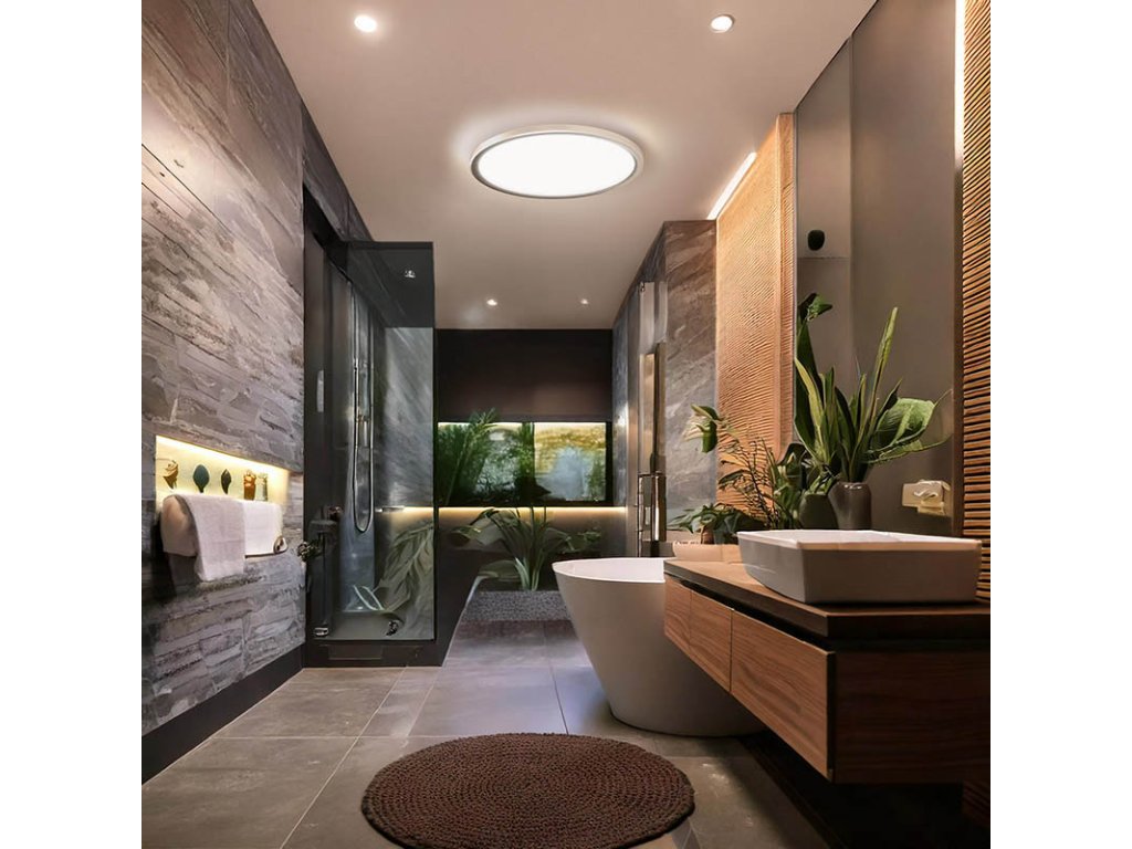 Osvětlení nabízí možnost nastavení teploty světla (chromatičnosti) na teplou (3000K), neutrální (4000K) nebo studenou bílou (6500K), čímž se přizpůsobí různým situacím. S výkonem 24 W a světelným tokem 2160 lm poskytuje výkonné a rovnoměrné osvětlení v úhlu 120°. Kvalitní materiál PP+PP zaručuje dlouhou životnost až 25 000 hodin, zatímco index podání barev Ra > 80 zajišťuje věrné zobrazení barev.
