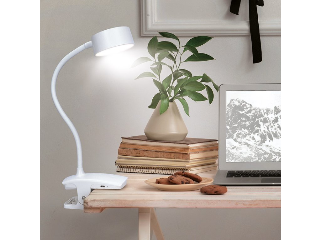 Bílá varianta nabíjecí lampičky s klipem kombinuje přenosnost, úspornost a jednoduché ovládání. Nabízí tři úrovně jasu, teploty světla (3000K/4000K/6500K) a výdrž až 3,5 hodiny na jedno nabití. Dotykové ovládání je intuitivní a příjemné na používání.