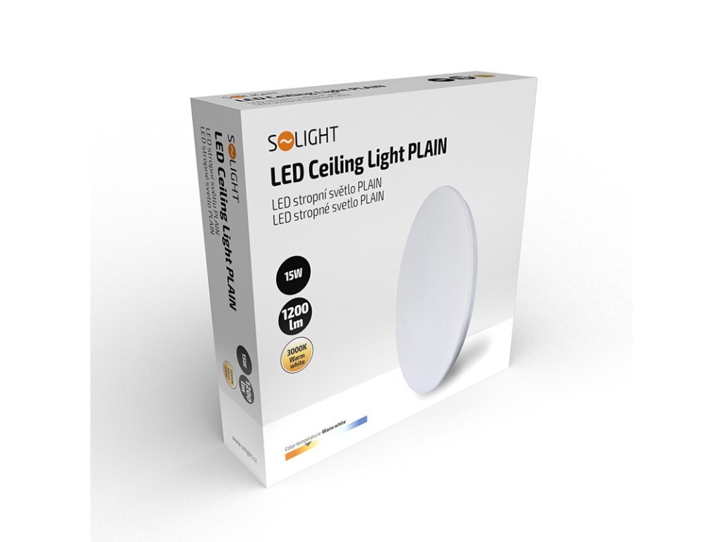 Solight LED stropní světlo Plain, 15W, 1200lm, 3000K, kulaté, 26cm