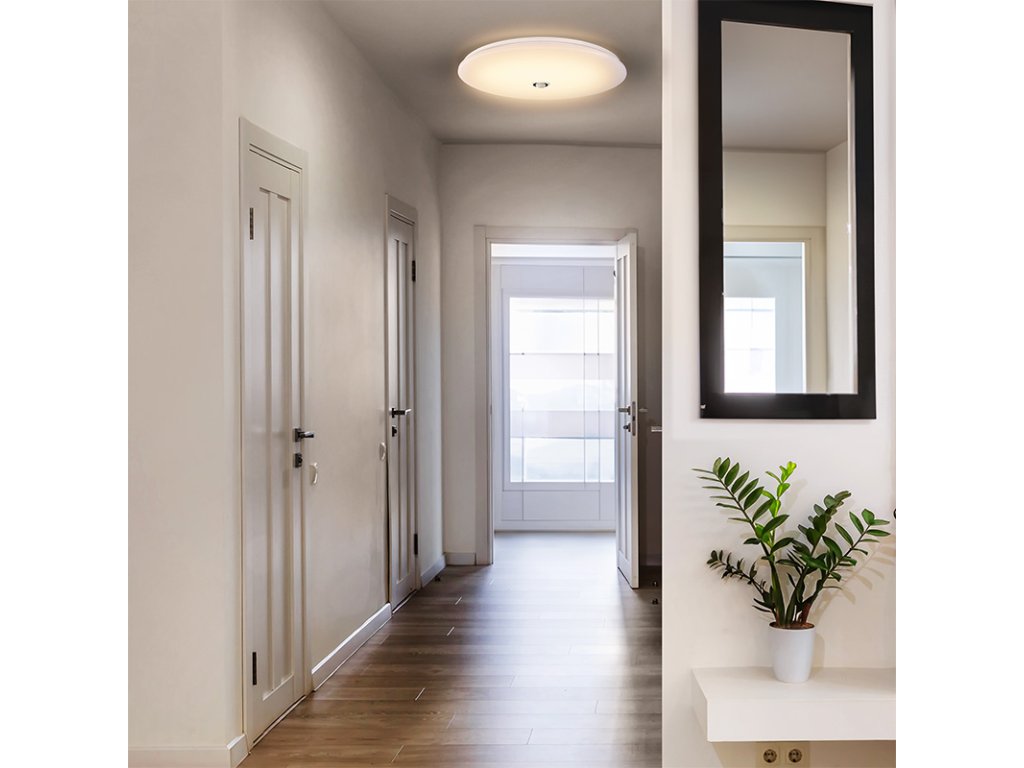 Svítidlo je vyrobeno z kvalitních materiálů – kovu (Fe) a PMMA difuzoru – což zaručuje odolnost a dlouhou životnost až 25 000 hodin. Světlo svítí pod úhlem 120° a jeho index podání barev Ra >80 zajišťuje věrné zobrazení barev. Instalace je možná na stěnu i strop, a krytí IP20 je vhodné do suchého vnitřního prostředí. Kulatý tvar a rozměry 330 × 60 mm doplňuje energetická třída G, která reflektuje nízkou spotřebu energie a efektivní provoz.