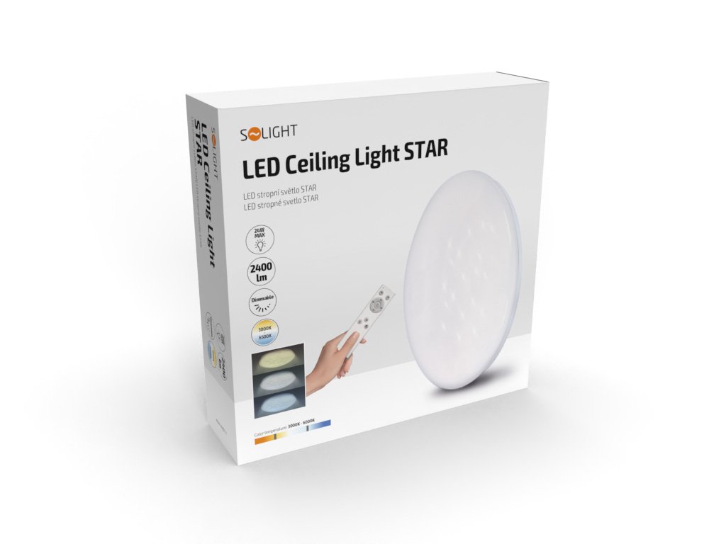 Solight LED stropní světlo Star, kulaté, 24W, 2400lm, dálkové ovládání, 37cm