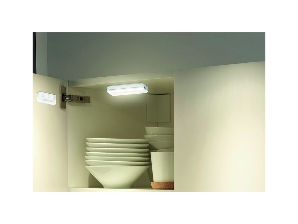 LED světélko určené pro automatické osvětlení zásuvek, komod nebo skříní se rozsvítí ihned po otevření a zhasne po jejich zavření díky magnetickému spínači. Nabízí světelný tok 40 lm, teplotu chromatičnosti 4000K (neutrální bílá) a je ideální pro praktické osvětlení drobných prostor bez přístupu k elektřině.