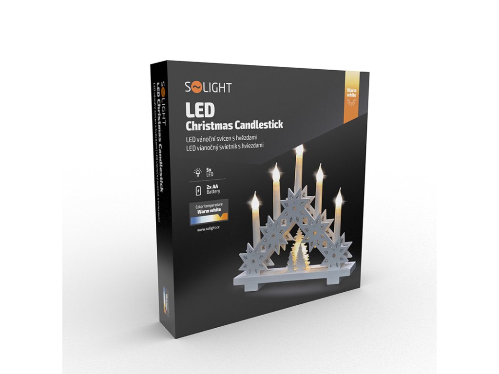 Solight LED vánoční svícen s hvězdami, 30cm, 5x LED, 2x AA