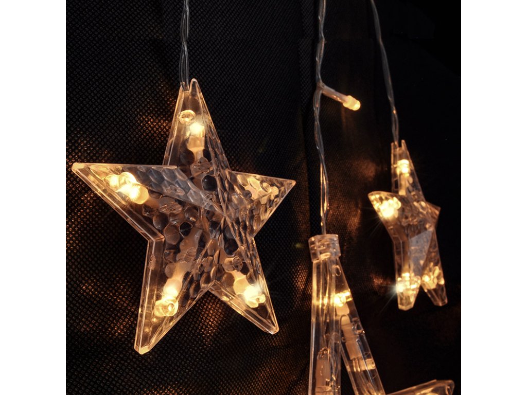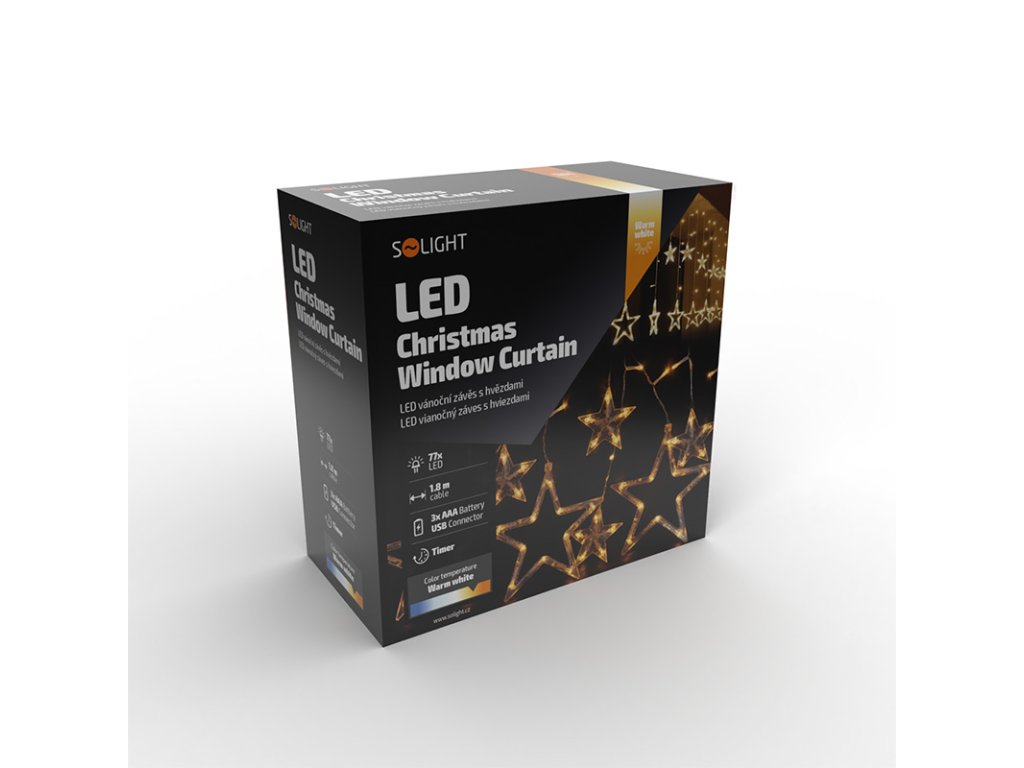 Solight LED vánoční závěs, hvězdy, šíře 1,8m, 77LED, IP20, 3xAA, USB
