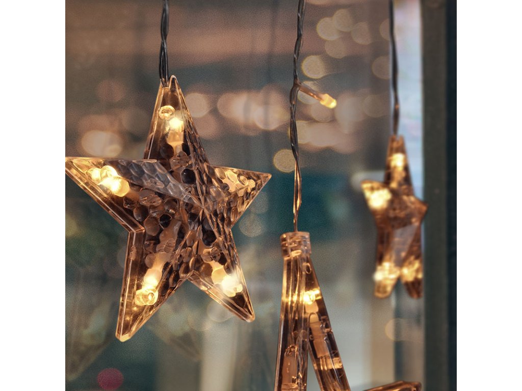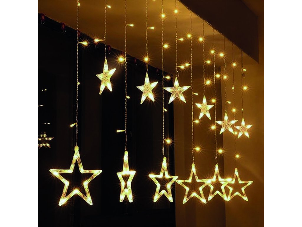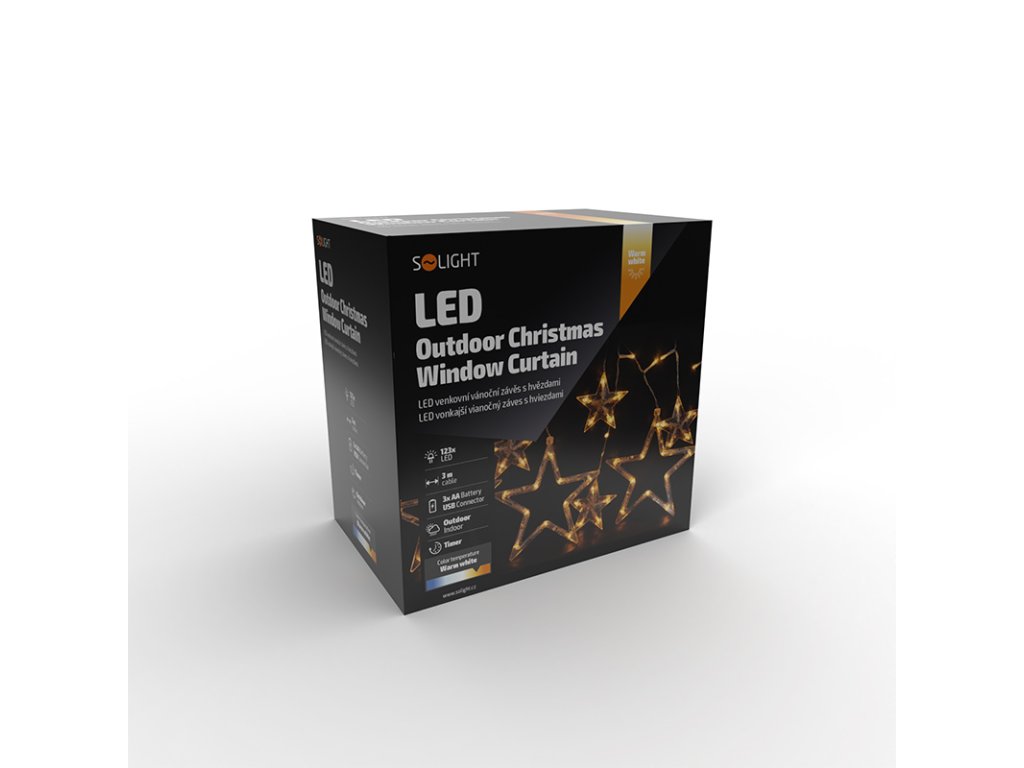 Solight LED venkovní vánoční závěs, hvězdy, šíře 3m, 123LED, IP44, 3xAA, teplá bílá