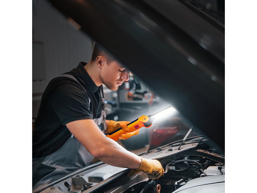 Kompaktní pracovní svítilna s hlavním COB LED zdrojem (500 lm) a přídavnými 2× SMD LED (70 lm) nabízí 3 režimy svícení: COB 100 %, COB 50 %, SMD 100 %. Vestavěný akumulátor (3,7V / 1200mAh) zajišťuje provoz až 10 hodin a plné dobití trvá cca 4 hodiny.