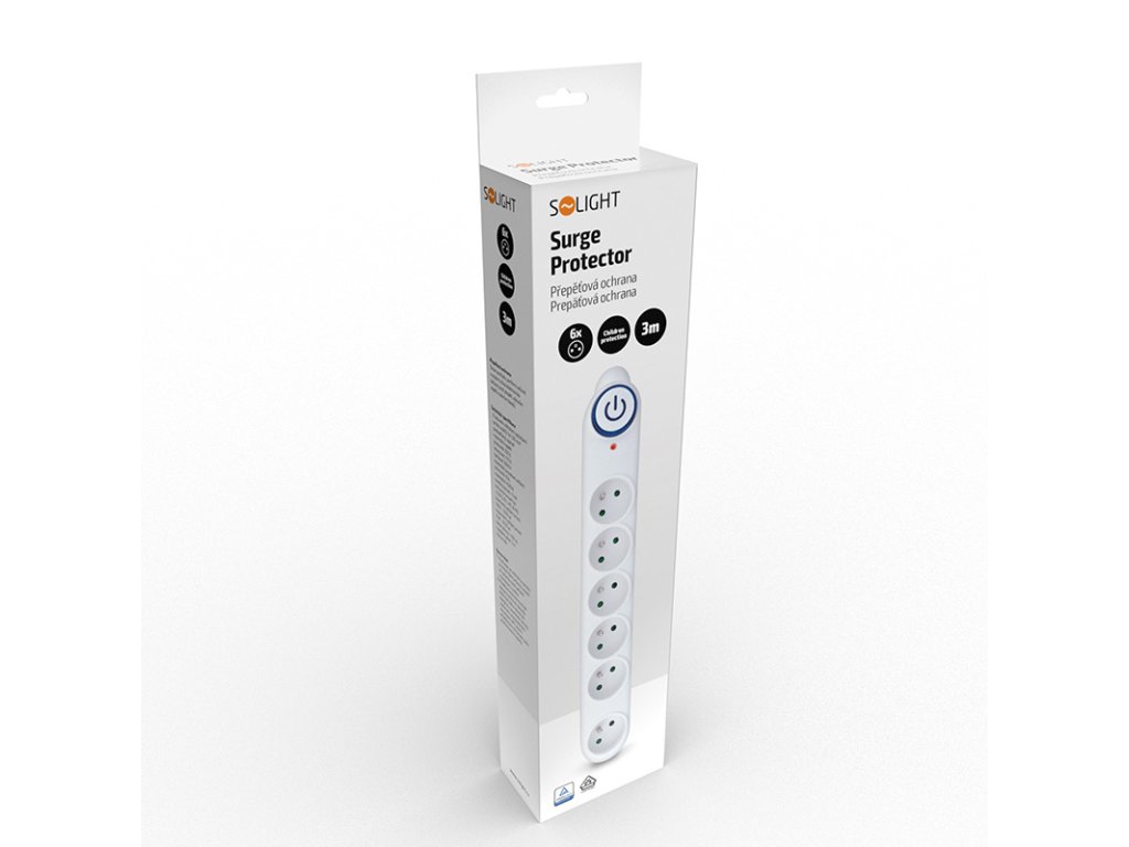 Solight přepěťová ochrana, 150J, 6 zásuvek, 3m, bílá