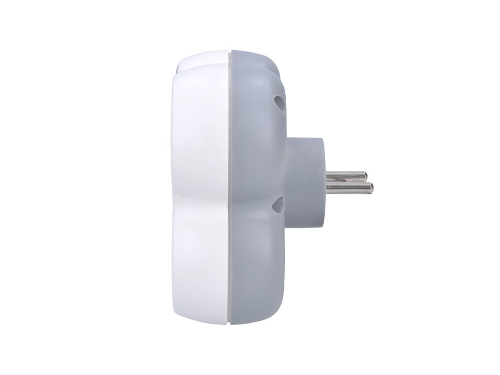 Zásuvky jsou vybaveny dětskou pojistkou, takže se nemusíte bát o bezpečnost doma. Kontrolka na těle přístroje vás informuje o tom, že je ochrana aktivní. Horní pootočená zásuvka usnadňuje manipulaci s přívodní šňůrou v zásuvce pod ní. Malé rozměry umožní snadné použití u pracovního stolu nebo třeba za televizí.