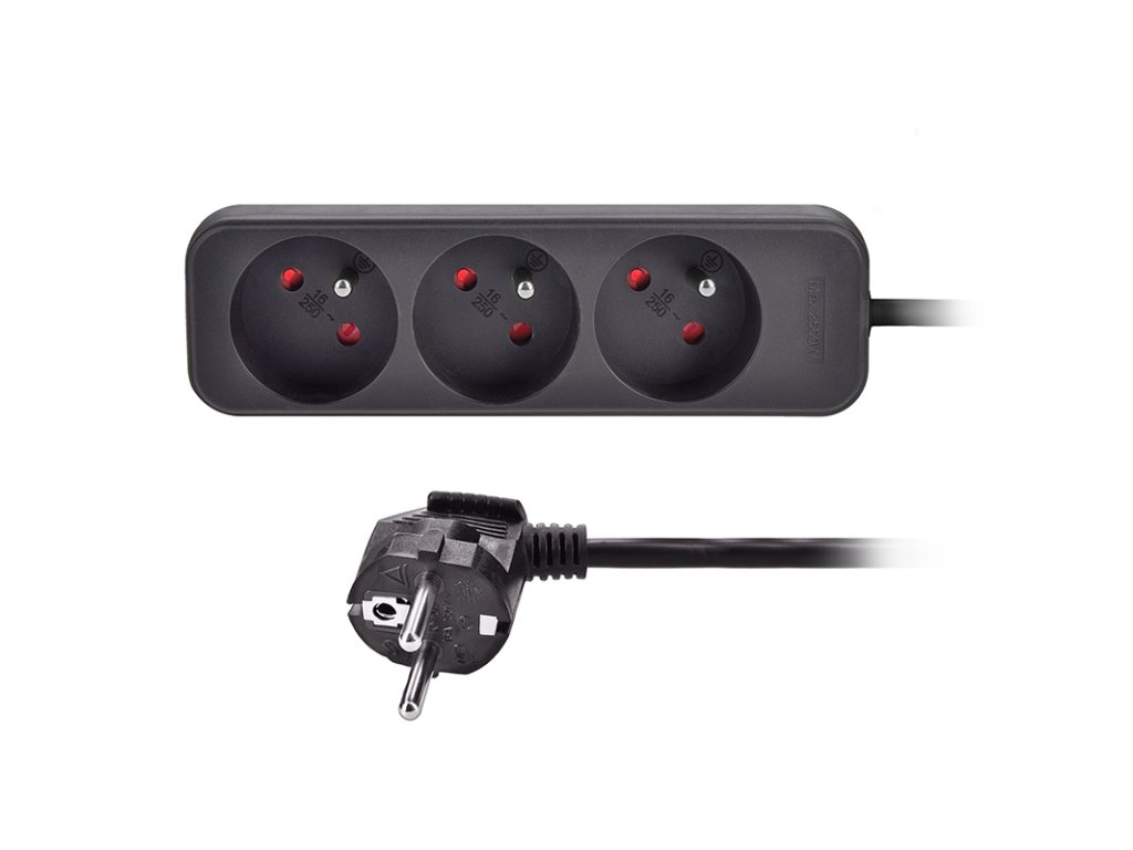 Praktický černý prodlužovací kabel s délkou 2 metry a třemi zásuvkami umožní přivést elektrickou energii tam, kde není k dispozici pevná zásuvka. Ideální pro domácí i kancelářské využití.