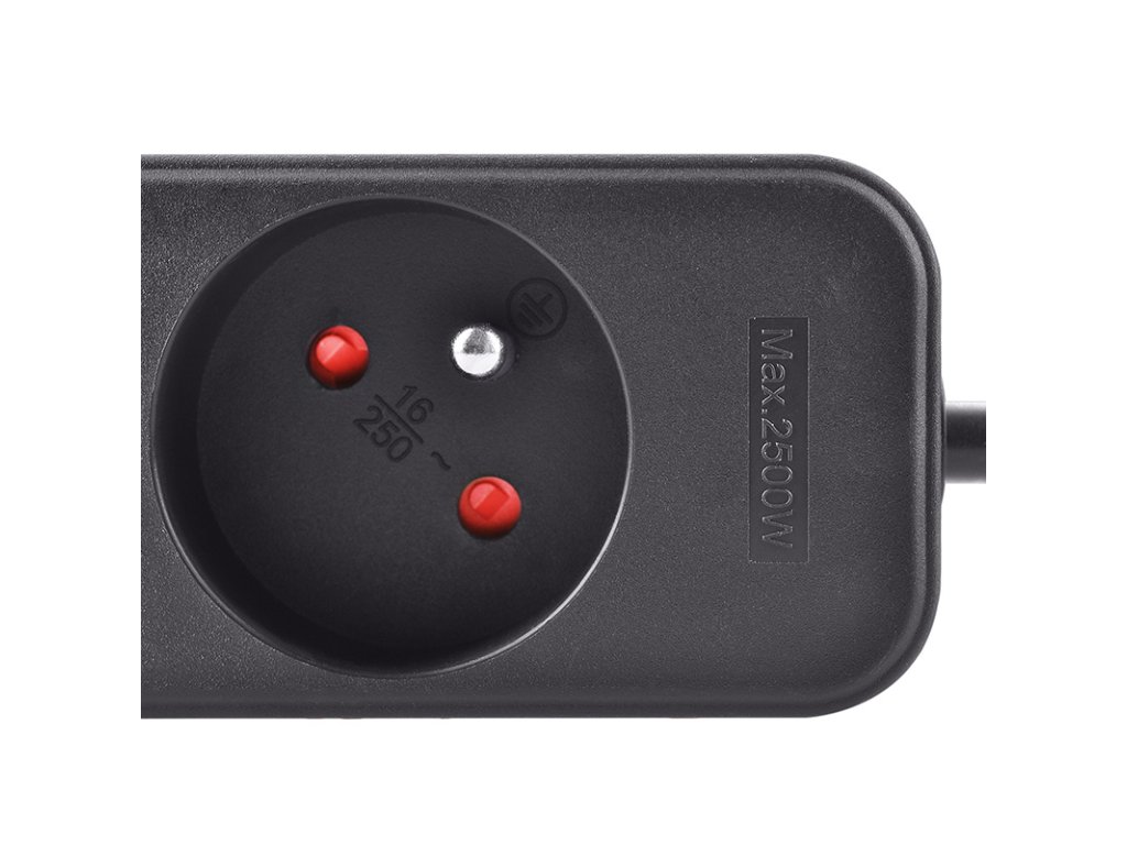 Přívod je navržen pro maximální zátěž 2300 W, tzn. proudové zatížení 10 A při napětí v síti 230 V~. Zajišťuje stabilní přenos energie pro běžné elektrospotřebiče. Zásuvky jsou vybaveny dětskými pojistkami pro maximální bezpečnost.