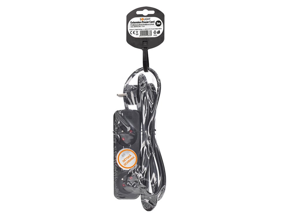 Praktický černý prodlužovací kabel s délkou 3 metry a třemi zásuvkami umožní přivést elektrickou energii tam, kde není k dispozici pevná zásuvka. Ideální pro domácí i kancelářské využití.