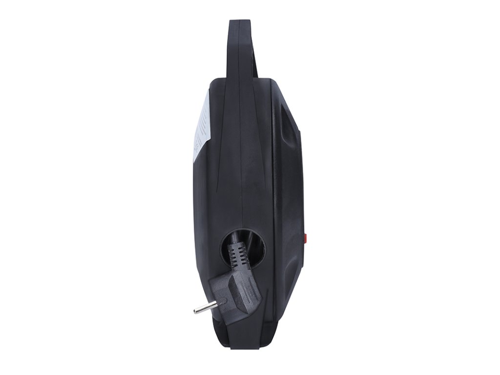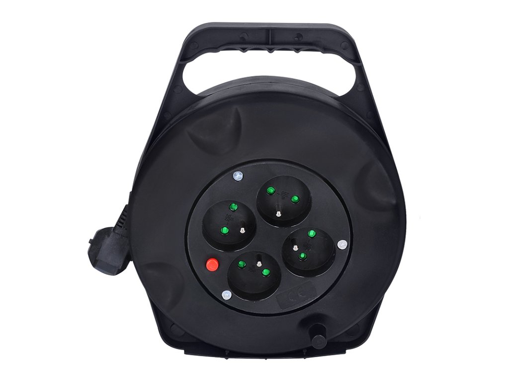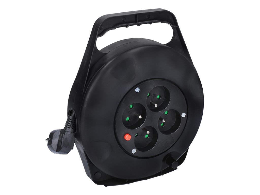 Kabel z PVC s vodiči o průřezu 3×1,5 mm2 je vhodný pro použití v interiéru nebo v suchých, chráněných prostorách. Buben je vybaven čtyřmi zásuvkami s dětskými pojistkami, navíc i tepelnou pojistkou, která přeruší napájení v případě přetížení nebo při použití bez úplného odvinutí kabelu.