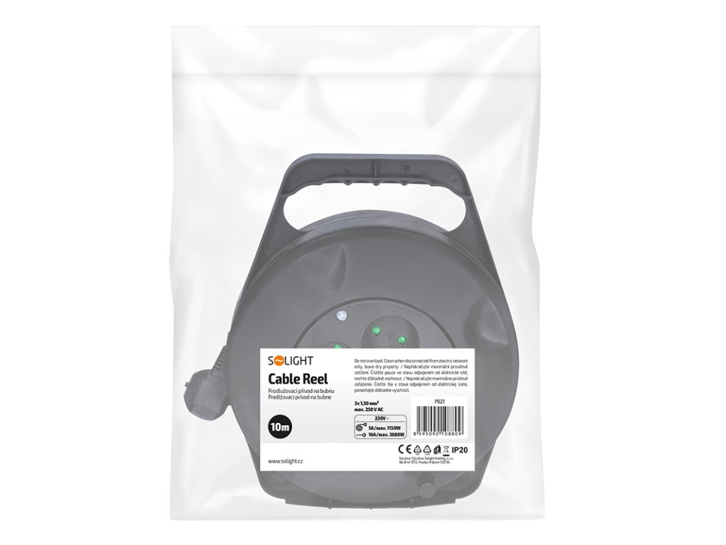 Solight prodlužovací přívod na bubnu, 4 zásuvky, 10m, černý kabel, 3x 1,5mm2