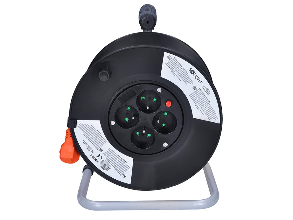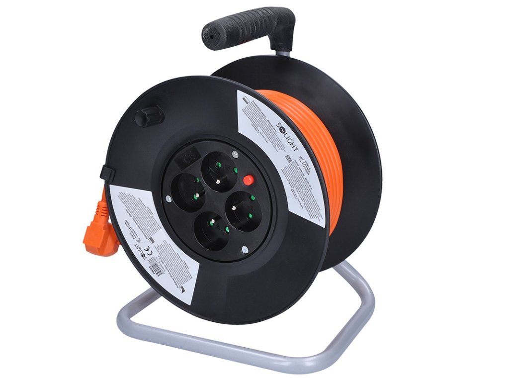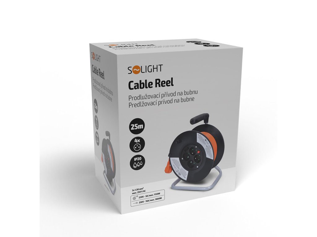 Solight prodlužovací přívod na bubnu, 4 zásuvky, 25m, oranžový kabel, 3x 1,5mm2